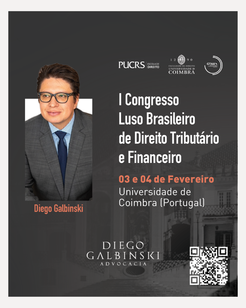 Diego Galbinski participará como palestrante do I Congresso Luso-Brasileiro de Direito Tributário e Financeiro, que será realizado nos dias 3 e 4 de fevereiro de 2026, na Universidade de Coimbra, em Portugal.
